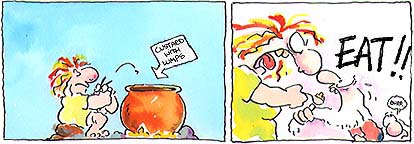 | Gryla achtet nicht besonders darauf, wie ihr Essen schmeckt, und in den meisten Fällen findet es ziemlich wenig Zustimmung. | Sie stellt einfach nur sicher, dass ihre Kinder etwas zu essen haben. |
