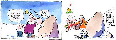 | Die Menschen verstehen nicht, was so schön ist an einem großen Felsbrocken, der in ihrem Garten steht und alles unter sich zerquetscht. |