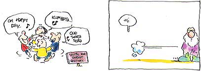 | Und sie lieben es, in ihren Rentierschlitten zu reisen. | Die Trolls beobachten die Kinder das ganze Jahr hindurch. Aber sie können nur Geschenke verteilen, wenn sie sichtbar sind. |